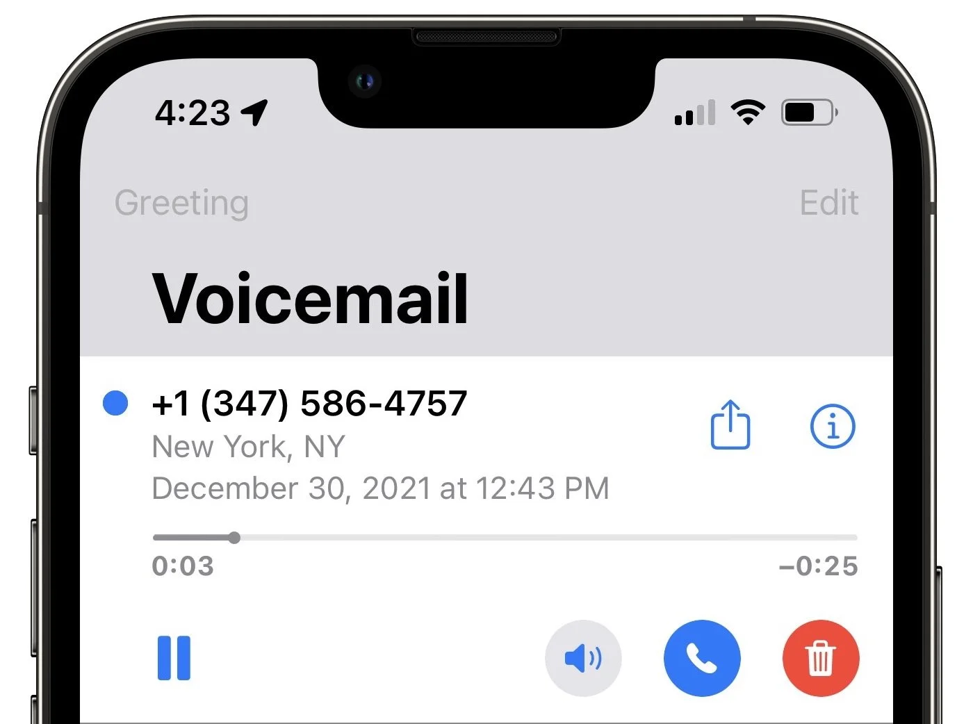 Precisely how you do this depends on the app. In the Phone app, all you have to do to clear the missed calls in the badge is tap Recents at the bottom—that’s enough to mark them as viewed. For voicemails, however, you’ll either have to listen to at least some of the message or delete it by swiping all the way to the left. (Remember that you can drag the playback slider to fast-forward if you want to mark it as listened without actually doing so.)