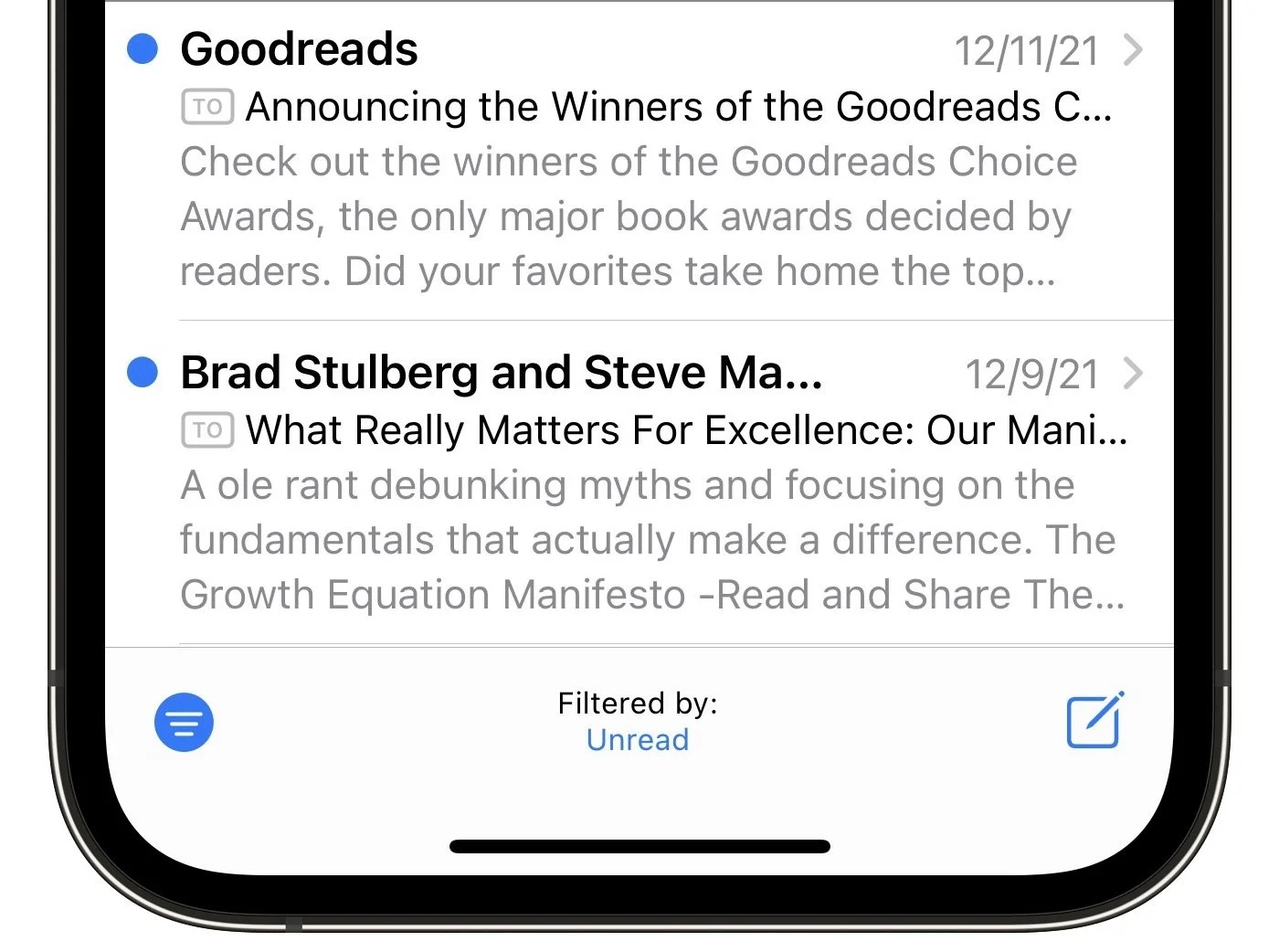 In Messages and Mail, the trick is to read or delete each message. That mostly means just loading it quickly and then moving on, although you can also swipe left to delete unread conversations or email threads. In Messages, you’ll have to scroll through all your conversations, looking for those that have a blue unread dot next to them. In Mail, you can tap the Filter button at the bottom to show only unread messages (tap Filtered By and select Unread if it’s set some other way).