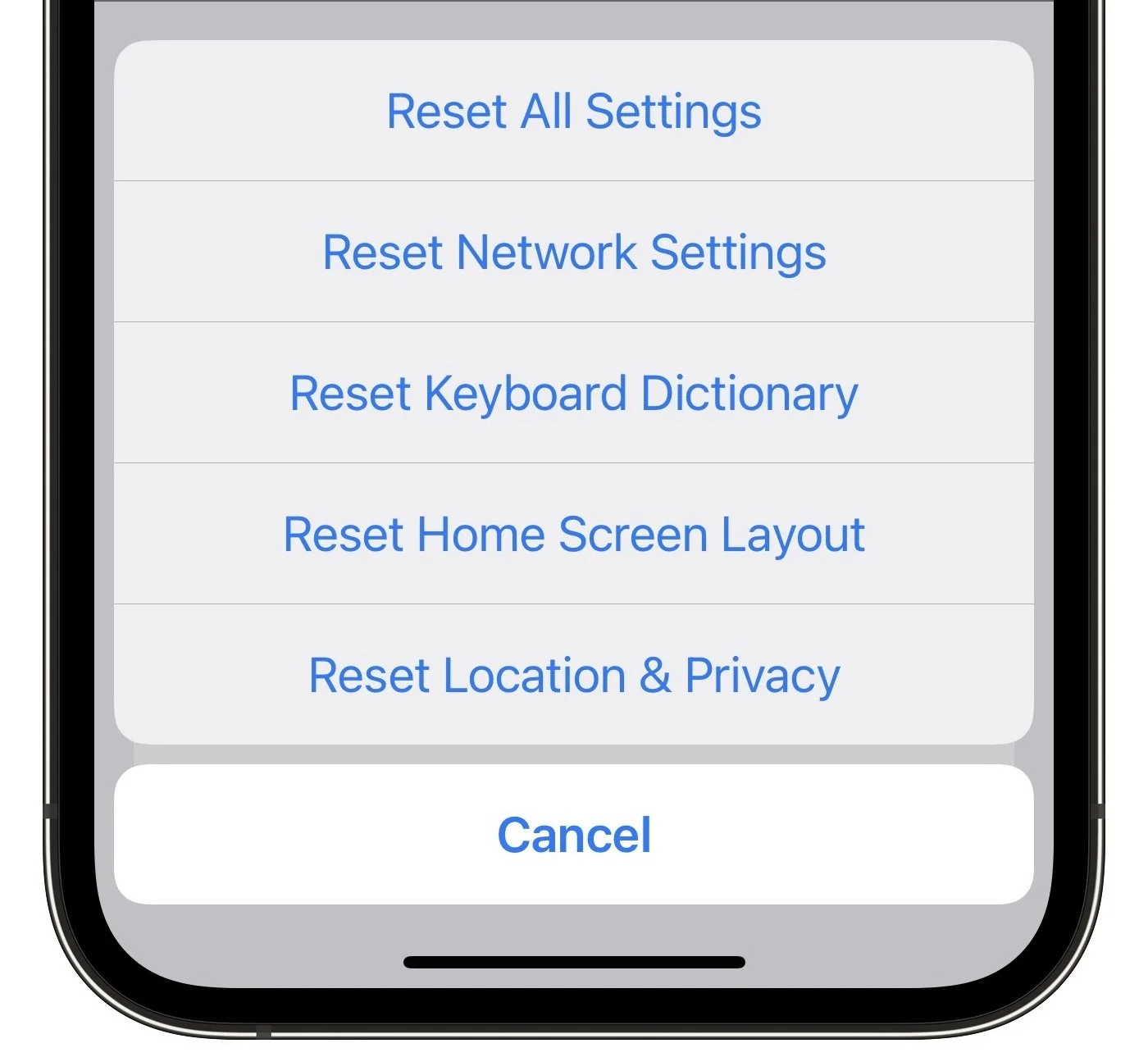 12) Reset network settings: Leave this option for late in the troubleshooting process because it will erase your saved Wi-Fi passwords, preferred networks, and VPN settings, which will be annoying to recreate. If it becomes necessary, invoke it in Settings > General > Transfer or Reset iPhone > Reset > Reset Network Settings.