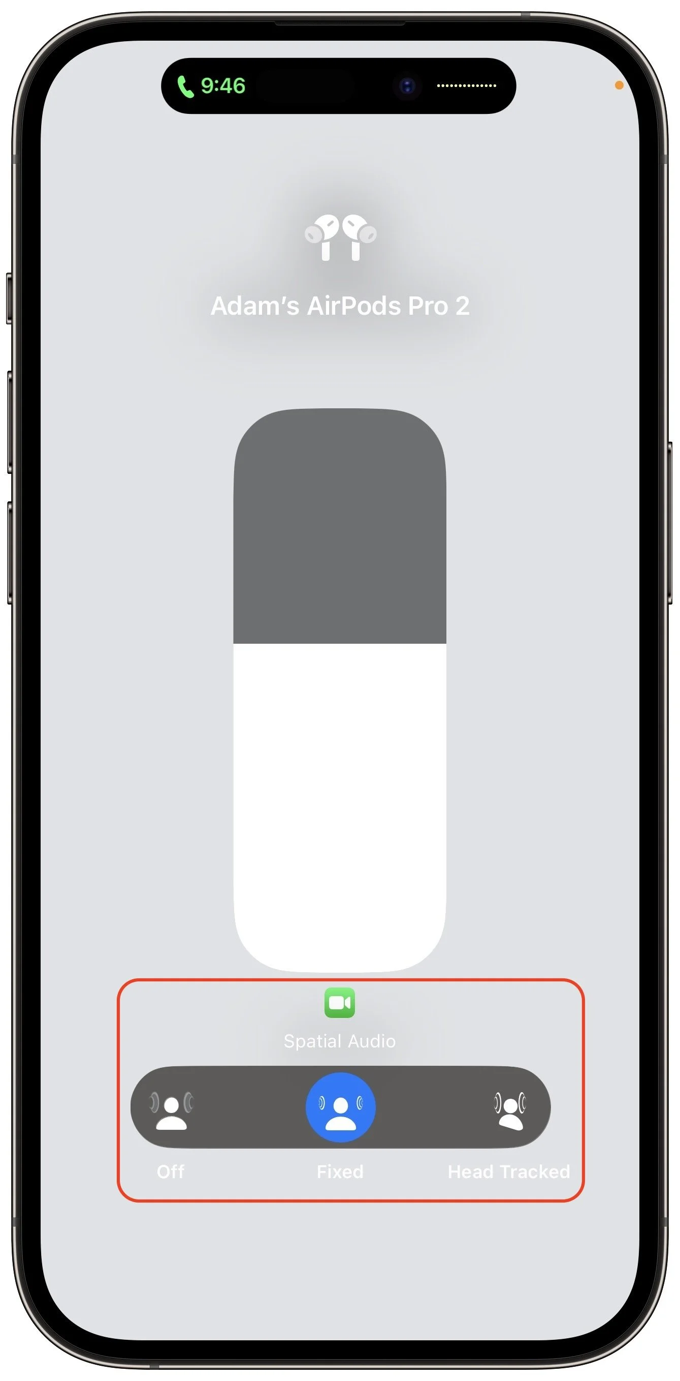 /If you listen to a FaceTime Audio call using AirPods and hear the other person’s voice moving annoyingly from side to side as you turn your head, the problem is likely head-tracked spatial audio. In general, spatial audio attempts to make sounds seem to come from all around you, and its dynamic head-tracking option adjusts the audio for each ear to simulate how the sound would change as your head moves. Dynamic head tracking may be desirable for music or movies, but with a FaceTime Audio call, having the other person flip back and forth between your ears can be highly disconcerting. To stop this behavior on an iPhone or iPad, open Control Center, touch and hold the volume control, and tap either Off or Fixed instead of Head Tracked. Spatial audio isn’t an option on Mac FaceTime calls.