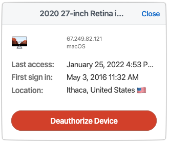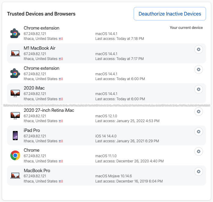 That said, if you ever notice any unusual account activity, look at your trusted device lists to ensure you recognize everything. If there’s a device you don’t recognize or one that was used at an unfamiliar place or at a time when you were otherwise occupied, immediately remove it and change that service’s password.