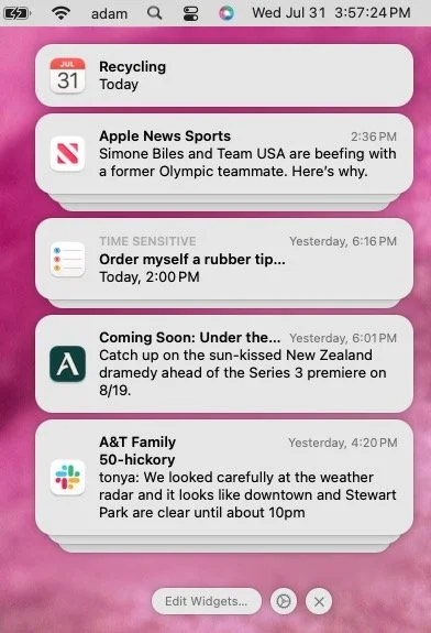 /iOS, iPadOS, and macOS all let you specify whether any given app should show no notifications, temporary banners, or persistent alerts: look in Settings > Notifications and System Settings > Notifications. Temporary banners appear briefly and then automatically disappear, which is appropriate for notifications requiring no acknowledgment. But what if you see a temporary banner only as it’s disappearing and can’t read it in time? You can find a historical list of notifications in Notification Center. To open it from the Lock Screen on an iPhone or iPad, swipe up from the middle of the screen. From any other screen, swipe down from the center of the top of the screen. On the Mac, click the date and time in the upper right corner. If your Mac has a trackpad, you can also swipe with two fingers from the right edge.