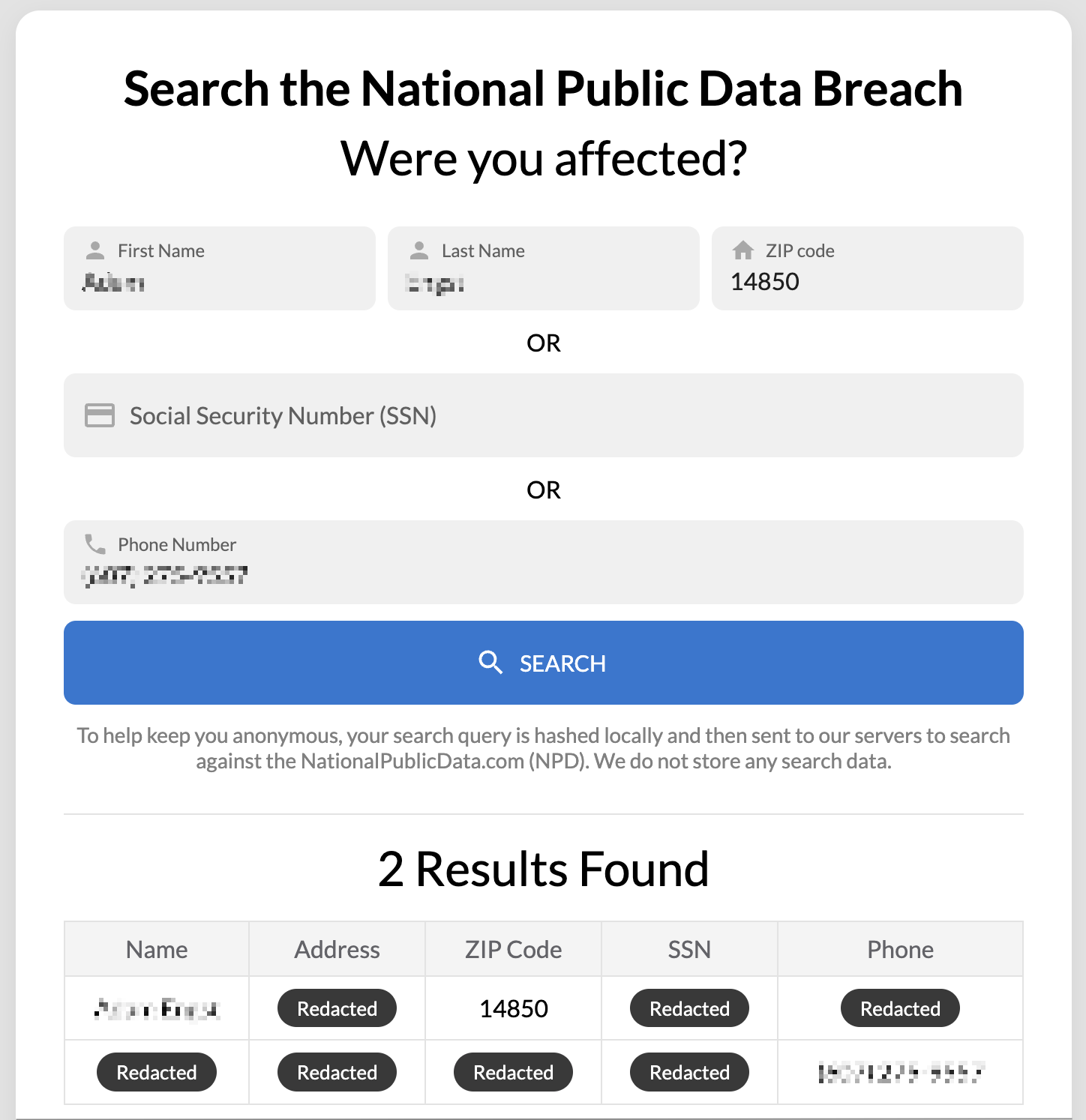 However, several sites will now tell you if your data was included in the NPD breach, including npdbreach.com and npd.pentester.com. Keep in mind that both come from companies that also offer data removal services, although neither were included in the Consumer Reports study.