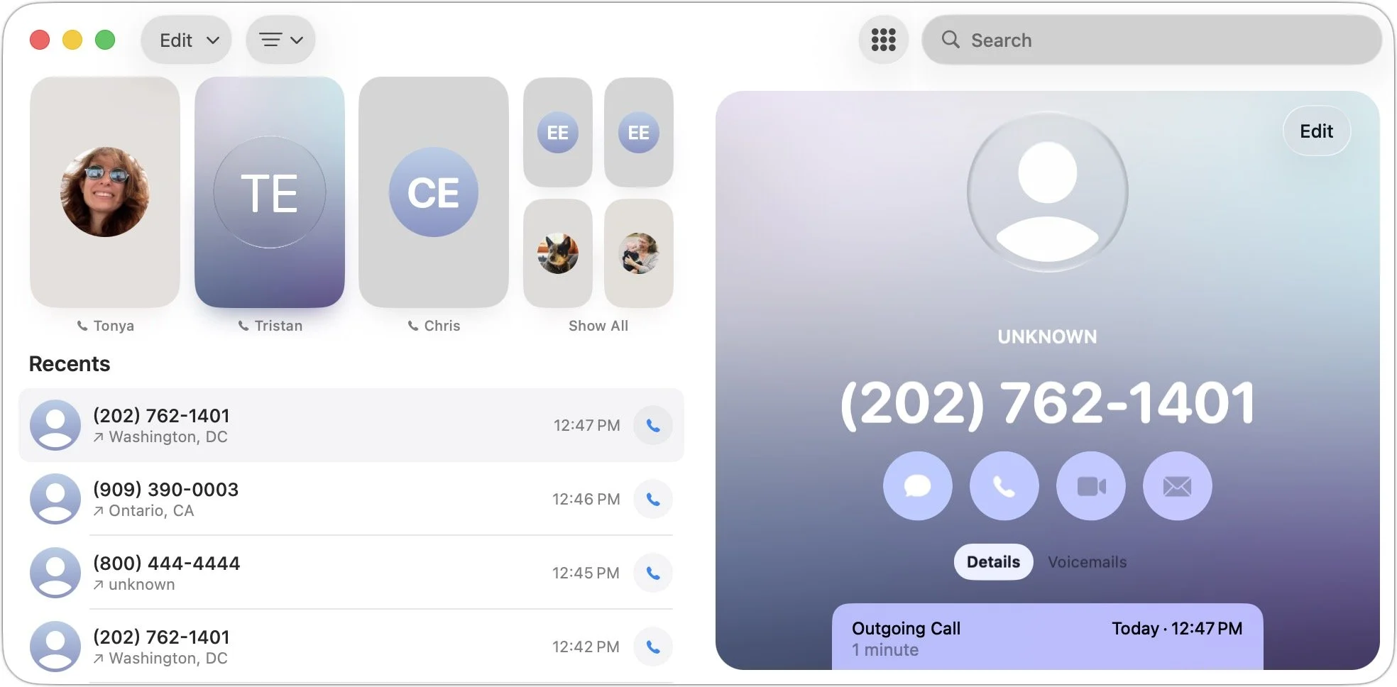 Wait, did we just say you could be on a call with someone using the Phone app on a Mac or iPad? Exactly! With macOS 26, iPadOS 26, and even visionOS 26, the Phone app has expanded to the iPhone’s sibling platforms. It looks and works very similarly, with the benefit of displaying more information at once. To use one of these Phone apps, your iPhone must be on the same Wi-Fi network and signed in to the same Apple Account.