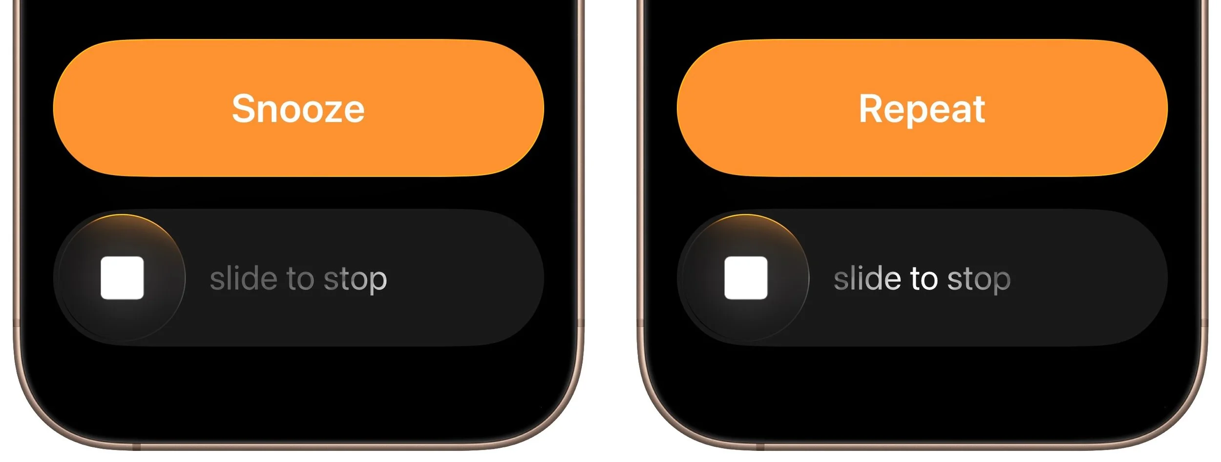 In iOS 26, Apple increased the size of the buttons that appear when alarms or timers go off, but the large Stop button was easy to hit when you meant to tap Snooze (for alarms) or Repeat (for timers). Apple made that mistake much less likely in iOS 26.1 by requiring you to slide the on‑screen control to stop the alarm or timer.